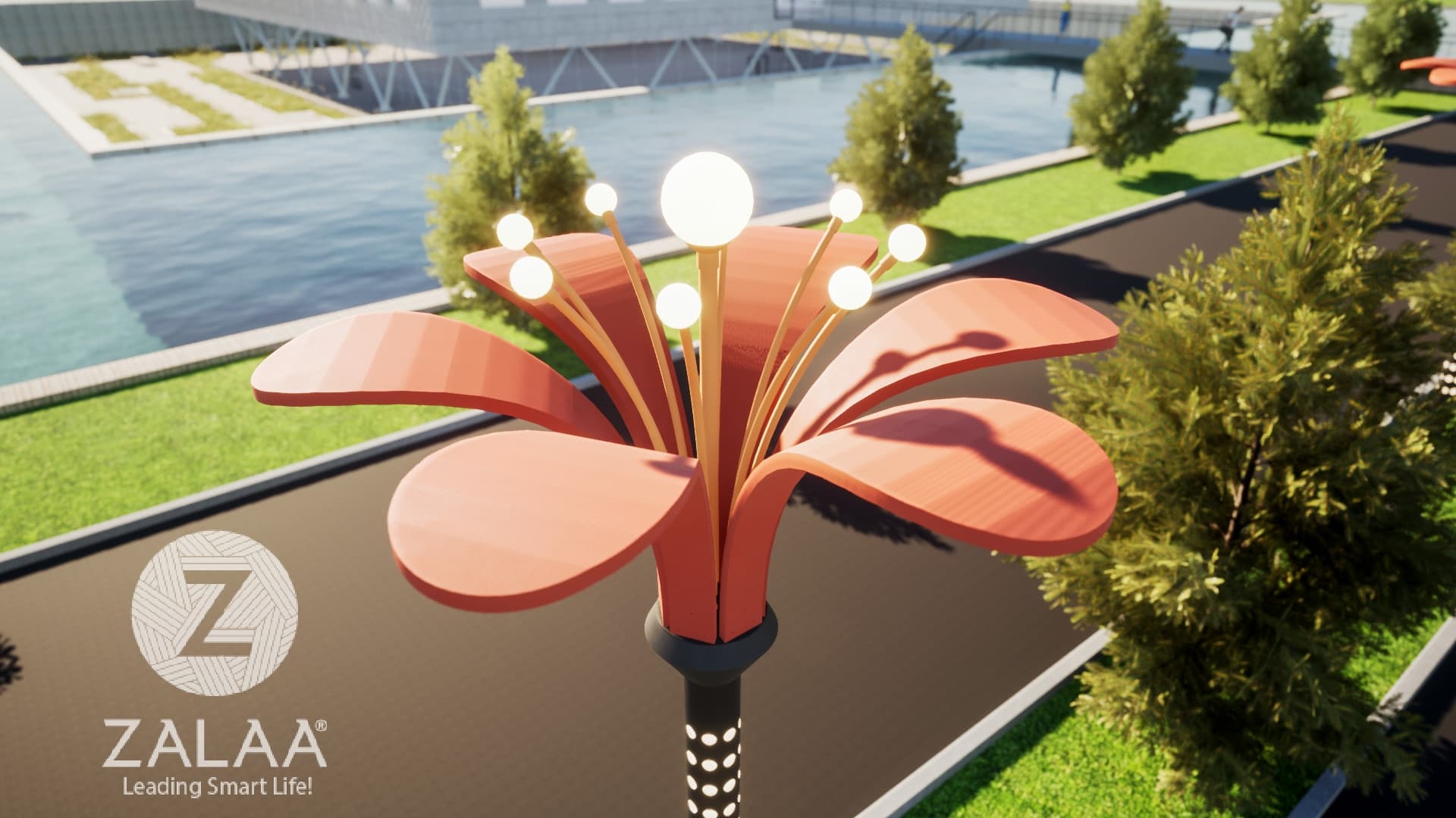 Khu vực trung tâm quảng trường rộng lớn của công viên, sân vườn, khu thương mại điện tử hay giải trí cần chiều cao cột đèn chiếu sáng từ 4-6m trở lên...để tỏa sáng xung quanh. Tháng 6.2024 này, ZALAA Lighting có dòng sản phẩm sản xuất theo yêu cầu như vậy với kiểu dáng bông hoa đẹp lạ phía trên là các nhị hoa với quả cầu led, thân có cắt CNC... để giới thiệu tới chủ đầu tư cho các dự án/công trình sắp tới.