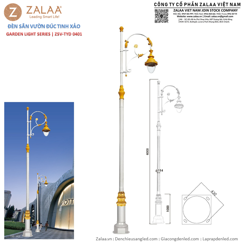 Liên hệ ngay với ZALAA Lighting để được tư vấn, nhận báo giá cột đèn sân vườn tân cổ điển đúc tinh xảo ZSV_TYD-0401 và giải pháp chiếu sáng phù hợp cho dự án của bạn!
