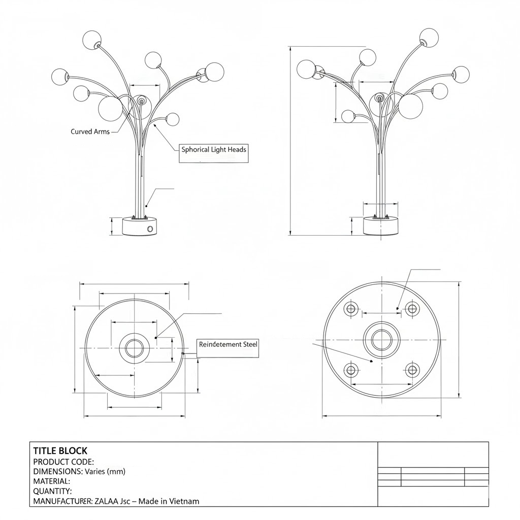 Do sản phẩm có tính tùy biến cao theo yêu cầu của từng dự án (chiều cao, số lượng bóng, công suất, màu sắc...), ZALAA Lighting sẽ xây dựng báo giá chi tiết sau khi đã trao đổi và tư vấn trực tiếp.