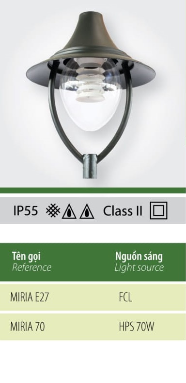 Bạn đang tìm sản phẩm BÓNG ĐÈN MIRIA - Đầu Đèn Trang Trí Công Viên /Cảnh Quan Sân Vườn cho cột từ 3-10m? Hôm nay, ZALAA Lighting giới thiệu thông số kỹ thuật và hình ảnh để quý khách tham khảo. Xin mời liên hệ báo giá tốt cho chủ đầu tư.