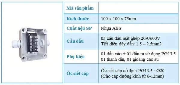 Hộp nối dây điện được dùng để tạo hướng rẽ cho các đường dẫn dây điện và tạo hệ thống dây điện nổi, nhằm có thể kéo, đấu nối dây dẫn, tạo thành các mạch nhánh. Hộp nối ống dây điện thường được sử dụng trong nhà và các công trình xây dựng ngoài trời.Ngoài tên gọi là hộp nối ống dây điện, nó còn có các tên gọi khác như : hộp nối, hộp nối điện, hộp nối dây điện, hộp box điện, hộp nối dây, hộp đấu nối điện