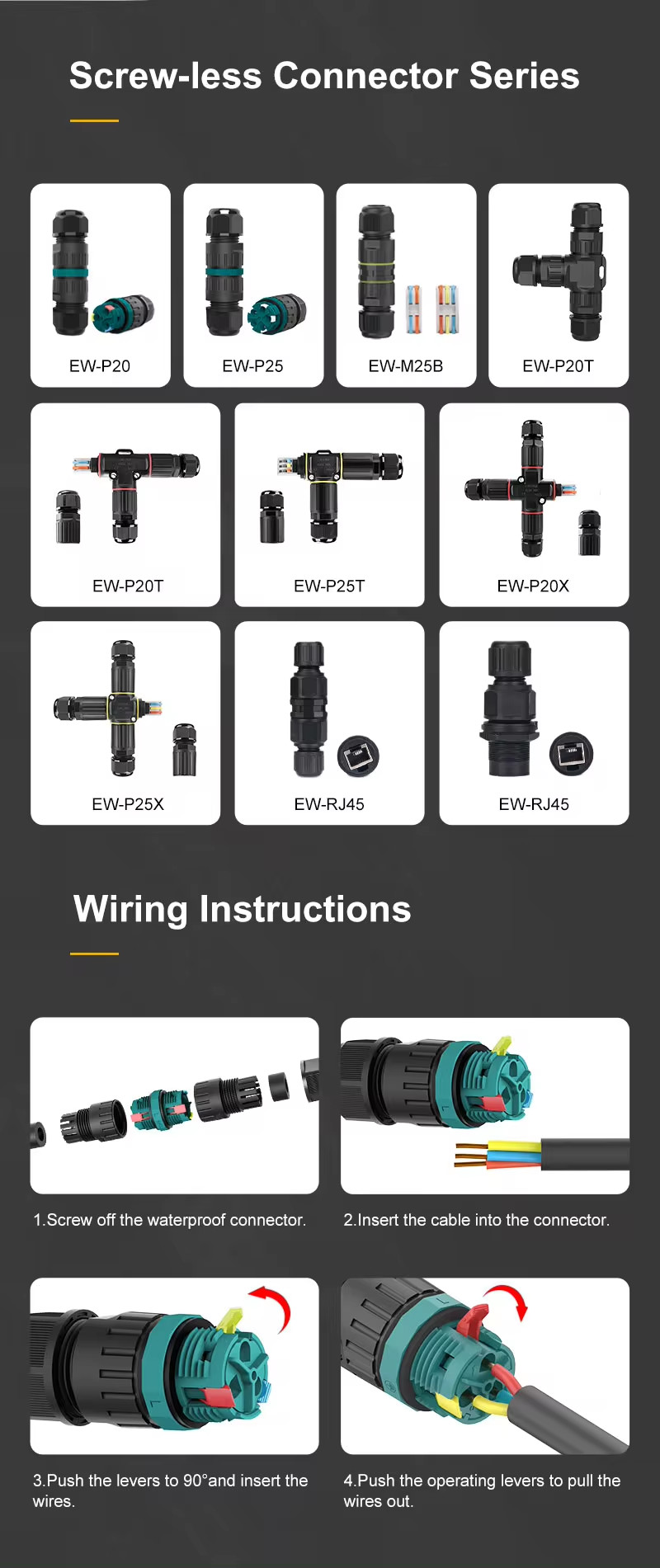 Cầu đấu nối 4 ngả cho dây điện đèn LED ngoài trời, Weichat EW-P20X, 450V, IP68 - Linh kiện đèn led Zalaa