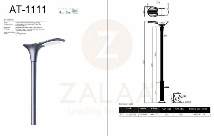 Thông số kỹ thuật cột đèn trang trí sân vườn công viên hiện đại mã số ZAT-1111