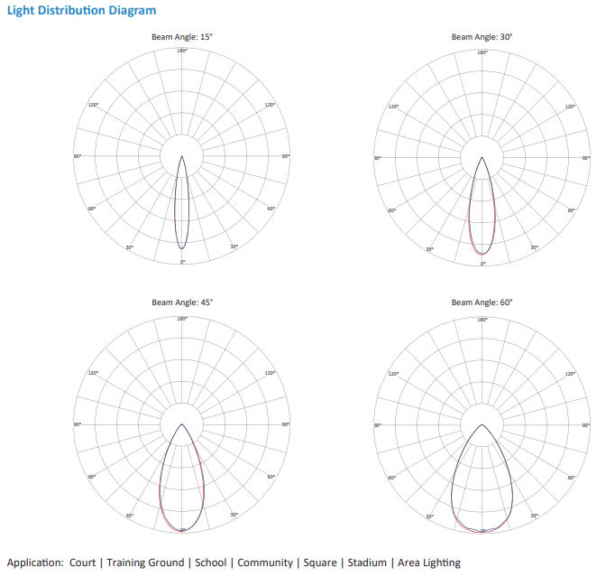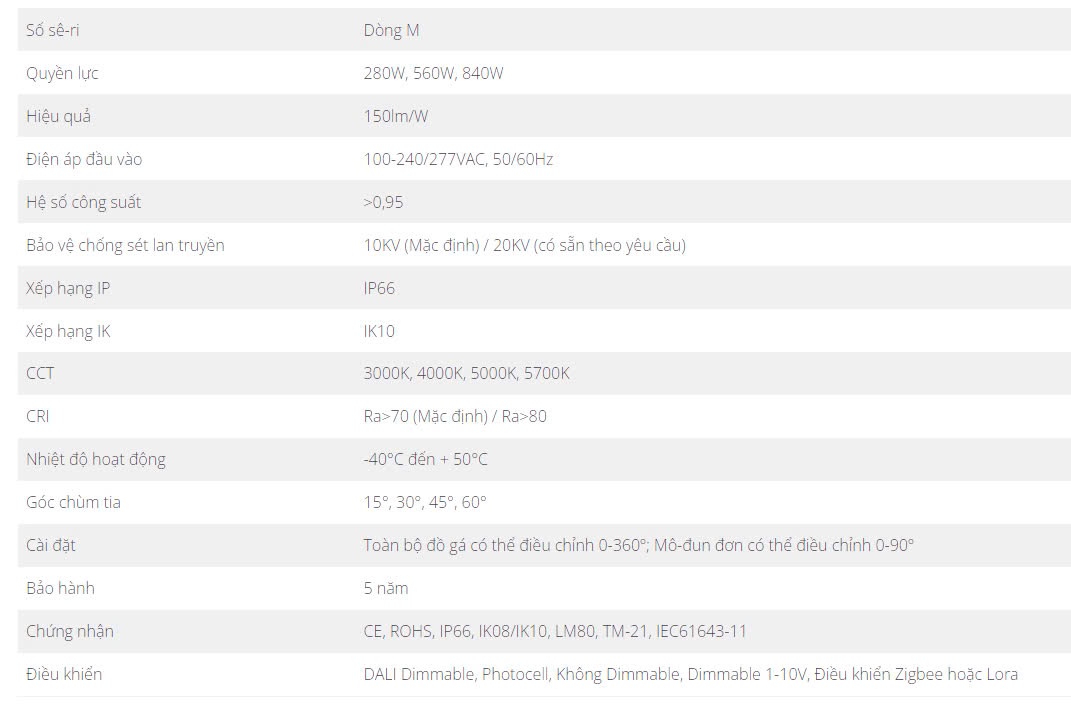 - Chiếu sáng diện tích rộng lớn: Tầm chiếu xa, góc chiếu rộng, phù hợp với các khu vực có diện tích lớn.