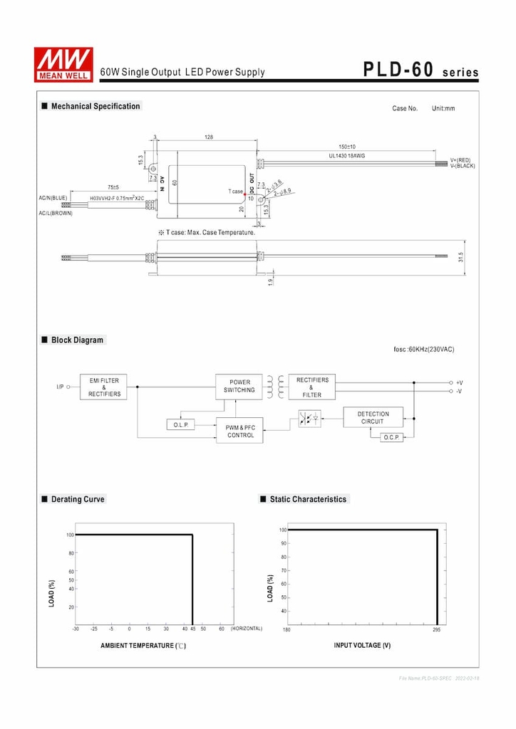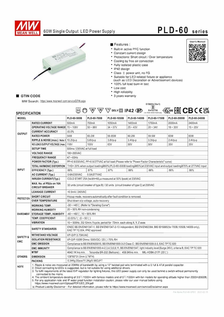 Meanwell PLD 60 SERIES: ( Click xem thông số kỹ thuật từ hãng tại đây)