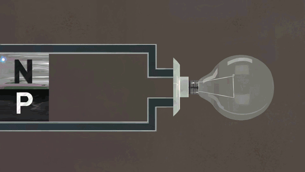 Tại nơi tiếp xúc giữa 2 loại silic (P/N Junction), electron có thể di chuyển qua tiếp diện P/N để lại điện tích dương ở một mặt và tạo ra điện tích âm ở mặt còn lại.